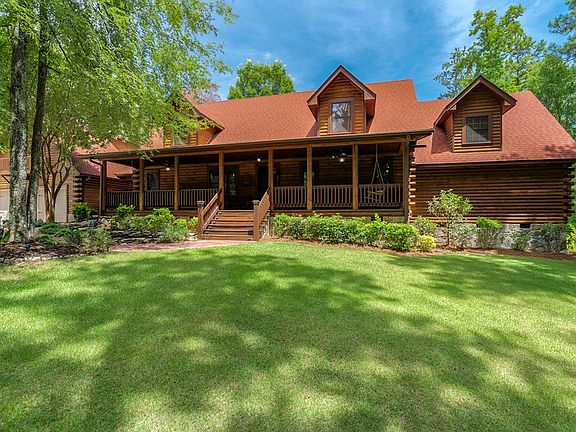 One-of-a-kind log cabin nestled on a secluded 5 acres in North Augusta! Rocking chair porch is perfect for enjoying your coffee & welcomes you inside. Upon entry, the foyer opens to a living/dining space & family room boasting high, vaulted ceiling & masonry fireplace. Eat-in kitchen features breakfast bar, center island, granite counters, decorative backsplash, & stainless-steel appliances. Laundry offers plenty of storage & powder room is convenient for guests. Master suite is an oasis of it own including a sitting area with fireplace, high ceiling, private loft, massive walk-in closet with built-in shelving system, double vanity with hammered copper sinks, & huge tiled shower with multiple shower heads! Upstairs, you'll find two large bedrooms & two full baths. Detached garage holds a workshop area, tons of storage, & apartment/entertaining area above featuring a full bath, bar, & balcony! Oversized deck & gazebo are made for an outdoor lifestyle! Additional 2044 sqft detached shop!