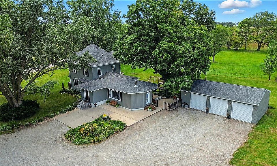 Experience country living without giving up city amenities! This beautiful 4-bedroom, 3-bathroom home on four private acres is perfectly positioned within Waterloo city limits near Cedar Falls, giving you easy access to the best of both communities. This updated 2-story, 2,232 sq. ft. home boasts a large open-plan living, dining, and kitchen area. Custom built-in shelving and oversized picture windows provide unique character and tranquil views of the surrounding landscape. The cozy primary suite features a triple window with window seat, a generously sized bathroom and double closets. The primary suite, along with a second bathroom and laundry room, are conveniently located on the main floor. A third bathroom and three additional bedrooms are on the upper level. Step outside to find the cool shade of towering mature trees, ample patio space, and a custom-built pergola — perfect for entertaining. The three stall garage and outbuilding provide plenty of space to park vehicles, store equipment, or house a workshop. A portion of the property is planted with native prairie grasses and flowers, offering a lower-maintenance, biodiverse landscape that attracts abundant wildlife and pollinators. Proximity to the bike trail system, schools, parks, dining, and shopping make this home the perfect place for a family to put down roots. Don’t miss out on this rare opportunity to call this beautiful, in-town acreage your own!