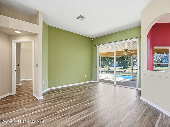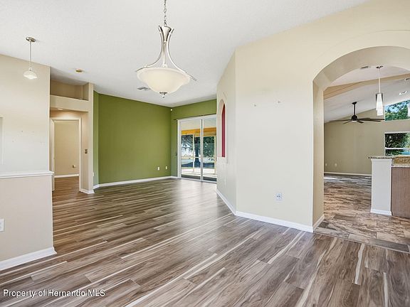Welcome to this stunning custom-built Home! This beautifully maintained 3-bedroom, 2-bathroom residence features an ideal split floor plan with both formal and casual living spaces, including a formal dining room, formal living room, and a spacious family room perfect for gatherings and entertaining. The updated kitchen and bathrooms highlight wood cabinetry, granite countertops, and modern finishes. The home is enhanced with luxury vinyl flooring and tile throughout for durability and style. Major upgrades include a new roof (2021) and a new AC system (2020), offering peace of mind and improved energy efficiency. Step outside to the screened-in back porch, ideal for relaxing and enjoying Florida's year-round outdoor lifestyle. Centrally located in desirable Spring Hill, Florida, this home is just minutes from shopping, restaurants, parks, schools, and offers quick expressway access to Tampa. Enjoy being close to the world-famous Weeki Wachee Springs State Park, perfect for kayaking, swimming, and Florida nature adventures. This exceptional property combines quality construction, thoughtful upgrades, and a prime location—making it a standout opportunity you don't want to miss.