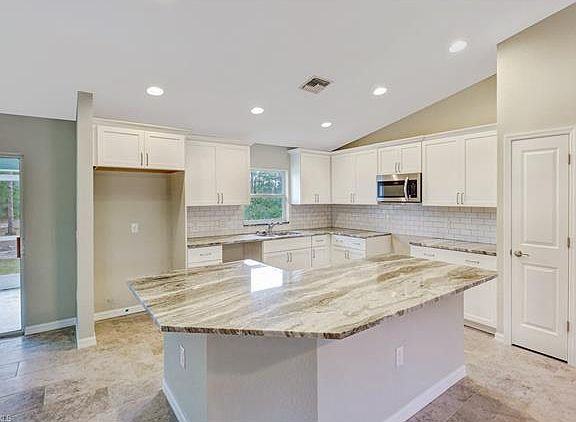 Start your new year off in a BRAND NEW HOME! This recently completed home features 3 beds/2 baths plus a den. Tile floors in living, dining, kitchen, den, laundry & both bathrooms. Carpet in all 3 bedrooms. All bedrooms, den, living room AND back porch have ceiling fans with light fixtures included. Kitchen and bathrooms all have real wood, soft-close cabinets from Starmark Cabinetry (made in USA) with granite counter tops. The kitchen also has white subway tile backsplash installed. The master bath shower has tile and a glass enclosure. The guest bathroom shower/tub has the same tile as the master. Purchase includes stainless steel appliance package for the kitchen. THERE IS NOTHING BUILDER GRADE ABOUT THIS HOUSE. The large screened in lanai is the perfect place to relax and unwind or entertain friends and family. The 1/2 acre lot has lots of mature Pine trees and plenty of room for a pool or outbuildings. Comes complete with 1 year warranty from builder plus warranty on appliances and mechanical systems.