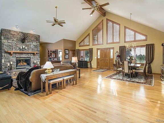 This Custom Ranch Home Sits on Over 5 Acres That Will Make You Feel The Unbelievable Peaceful Lifestyle Offered by This Location! Pride of Ownership Inside and Out! The Large Open Floor Plan Boasts With Amazing Views From the Family Room With Vaulted Ceilings! The Kitchen Has Plenty of Counter Space For Your Entertaining Needs! You Have a Nice Eating Area/Breakfast Nook with Views! Double Ovens and Granite Countertops! The Master Retreat is Graced With Mountain Views and an Updated Bathroom! The Office has Beautiful Built-Ins! The Large Laundry Room has the Washer and Dryer Included! The Walk Out Basement is Partially Finished! There is A Wonderful Bedroom and Full Bathroom! There is a Family Room that Could Be Utilized as an In'Law Set Up! There is over 1700 unfinished sq. feet in the basement for additional needs that the Buyer May Have ! The Property is Landscaped With Trees and Garden areas... The Tuff-Shed (20x12) is practically Brand New and Included! There is an Invisible Fence Available! The AC and HVAC are brand new!! You will Find A Quiet and Peaceful LifeStyle that does Allow Horses! You are Only Minutes From Parker and Castle Rock!!