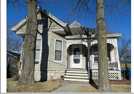 This 1,168 square foot, Victorian-style 1.5-story home features 2 bedrooms, 1 bathroom, kitchen with island, basement, covered porch area, and a one-car garage.