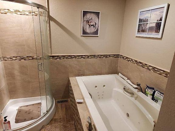 What a lovely upscale condo with cork floors up and new carpet down. Winter views of the city lights and the feel of a home rather than a condo. Oversized 2 car garage. Soaring vaulted ceilings with a window up high that lets a ton of light in. Quiet at the end of a cul-de-sac with no traffic even close by. Almost downtown area off Fireweed and North Star. Close to trailhead that leads to Westchester Lagoon and Chester Creek trail. 2 Decks with lots of trees and some new appliances. Each bedroom has its own bathroom. Newly remodeled master bathroom remodeled one year ago with big 2-person jetted tub, corner shower, new tile throughout, blue-tooth speaker in ceiling and blue night light that creates great ambience! This place is very nice, comfortable, quiet and a great location in town. 5 minutes drive to downtown, 10 minutes to the airport and 3 blocks from the head of a bike trail that leads to the coastal trail and chester creek trail. Close to Fireweed Lane and Arctic Blvd. HOA dues: $290/month - includes: water, sewer, trash, recycle, GCI cable, exterior maintenance, snow plowing, exterior of building insurance, yard & shrubbery maintenance.