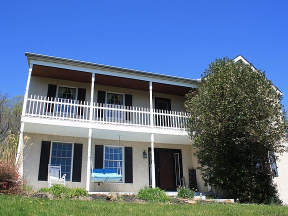 PRICED TO SELL!! Prepare to be amazed! This property is situated at one of the most sought after locations in the area with breathtaking views off of the front porch or second floor balcony that over looks the valley. Open floorpan, custom hardwood flooring throughout and brand new slate appliances are just the beginning. Walk into the huge cathedral ceiling foyer with custom hardwood floors, staircase and balcony. French doors lead you through the foyer into the kitchen with a double sided, white-washed brick fireplace separating the large open kitchen and the sun filled family room that is lined with windows. Another set of french doors leads you to the formal living room located in the front of the home. Off of the kitchen is the dining room that overlooks the stunning views and also has a full bathroom and separate outside entrance. This once was used as an in-law suite and could easily be converted back if desired. Upstairs you will find a sprawling wrap around banister outlaying the upstairs foyer with a door to the upstairs balcony. Two large bedrooms at each wing with a laundry room and full bath separating them. At the focal of the second floor is the expansive master suite with double door entrance, vaulted ceiling and custom flooring. A hallway with two walk-in closets lead you to a huge master bath with both a soaking tub and separate shower and toilet room. In need of storage? The attic is a full walkup making storage very accessible. The full, main level, walk out finished basement offers a large family room with a second fireplace, workout center and more storage. Also attached to the basement is a one car garage that has been converted to a workshop. Off the back of the home is a large sunroom which leads down the stairs to a sun deck and heated pool. Outside you will find an almost 5 acre oasis. The yard is completely surrounded by 40 foot trees for complete privacy. A large shed for lawn equipment is adjacent to the backyard, paved basketball court. There is also a large fire pit, compost pit and garden. A new water filtration system has been installed as well as a new well pump. This property has a tree lined, private driveway so as tempting as it is to sneak a peak of your dream home, please only enter driveway if you have an appointment. Worried about maintaining the yard? The sellers are offering a year of professional lawn service with an accepted offer. Move right in with no maintenance! Living/Great Room: 16 x 22 Main Dining Room: 14 x 15 Main Kitchen: 14 x 18 Main Main Bedroom: 16 x 20 Upper Second Bedroom: 12 x 14 Upper Third Bedroom: 16 x 13 Upper Fourth Bedroom: 14 x 15 Main Library: 13 x 16 Main Foyer: 14 x 11 Main Foyer: 19 x 11 Upper
