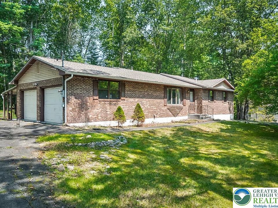 Welcome to this inviting ranch home on a quiet cul-de-sac with no HOA, offering nearly 1,800 sq. ft. of living space and many updates throughout. The remodeled kitchen features new stainless steel appliances, updated cabinets, and modern finishes, while the bathrooms have been upgraded with new tile and cabinetry and the laundry room refreshed with new tile and paint. Inside, enjoy a bright living room with hardwood floors and a spacious family room featuring hardwood flooring, a cozy pellet stove, and plenty of windows overlooking the yard. This home includes 3+ bedrooms, 2.5 baths, and a full basement with a partially finished bonus room plus additional space ready to be completed for extra living area. Outdoor highlights include a deck, covered front porch, and a 2-car garage with ample parking. Conveniently located near major routes, shopping, and Pocono attractions, this move-in-ready ranch offers both comfort and potential.