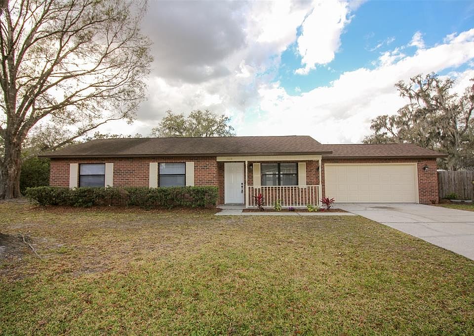 South Lakeland Gem! 3 bedroom 2 bath home in a quiet neighborhood with no HOA. This charming classic ranch style home with real brick exterior sits on a great corner lot with large oak trees and an oversized yard. Inside you will find many recent updates including a bright open living room with all new paint and updated vinyl flooring, two large windows at the front and new large French doors at the back allow lots of light. Just off the living room is a dining area with tile floors that opens to the fully updated kitchen: ALL NEW cabinets, countertops, fixtures, stainless steel dishwasher and microwave. Whole house has been freshly painted. Master bedroom features walk-in closet. Master bathroom has updated toilet, new vanity and fixtures. Bedrooms 2 and 3 feature all new carpet and doors. Hall bathroom features update toilet and new vanity and can be easily accessed from either bedroom or living area. Back yard is fully fenced and features a large open patio and a large fire pit circle just off the house for entertaining and relaxing. A large secondary slab is located in the northern corner of the yard; designed to hold a large shed or can be used as a kid's play area. Don’t miss this home!