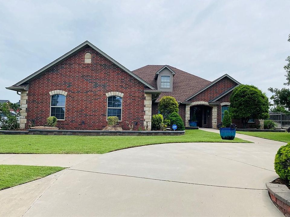 You must see this five bedroom, four bath house nestled on a corner lot right in the heart of the sought after Prairie West addition. The large barrelled entryway draws you into this warm home, right into the cozy living room with a gas log fireplace. The large open kitchen has double ovens and rich stained cabinets with plenty of storage and a nice sized pantry. The breakfast area has a great built-in storage and beautiful natural light from the large windows. Master bedroom has trey ceiling and stained crown molding, the master bath has a lovely tiled shower, his and her vanities and relaxing jetted tub. Two of the extra bedroom share a very functional jack and jill bath. Oversized utility room with storage and also features a sink. Large basement with two storage closets and an additional room. Covered patio, circle drive and mature landscaping round out this wonderful property. Call today for your showing!