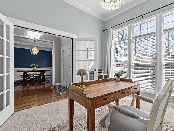 Great floor plan in one of the best neighborhoods in Wake Forest! Walk up to a beautiful front door with sidelights and into the two story foyer of this lovely 4 bed, 2.5 bath home. Notice the dining room with hardwoods, trey ceiling, crown molding, and wainscot. Enjoy the serenity of the office with glass French doors and lots of natural light coming through the front windows with transoms. Move into the family room with gas log fireplace, built-ins, and a wall of windows. The FR is open to the kitchen and breakfast nook. The kitchen has granite counters, tile backsplash, stainless steel appliances and pantry. The flex room downstairs could be used as a playroom, office, or bonus room area. Upstairs you'll find the large primary suite with trey ceiling and ceiling fan. Enter a luxury bath with garden tub, separate shower, dual vanities, and tile floor. You'll also find 3 large secondary bedrooms, a hall bath and laundry room upstairs. Lastly, walk into your backyard where you can enjoy your beautiful back deck and patio. Across the street are the fabulous neighborhood amenities - tennis and pickleball courts, clubhouse, playground, pool and pond with walking trail. All this plus convenient to downtown Wake Forest and Rolesville, and just 30 minutes north of downtown Raleigh.