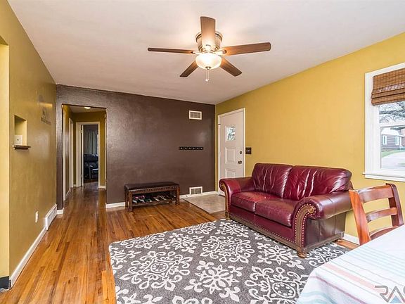 Check out this darling of a property located near USF, Augustana University and Sanford Hospital. This 3 bed, 2 bath, ranch style property has original wood flooring as you enter the home into the living room which is also filled with tons of natural light. The wood floors continue down the hall into the 3 main level bedrooms featuring newer windows and ceiling fans. Rounding out the main level is a kitchen with plenty of cabinet space and a full bathroom. The lower level consists of a large family room with plenty of space for an office/play area and a 4th non-legal bedroom with 1/2 bath! You'll love spending time outside relaxing and enjoying the shade from multiple mature trees in your large fenced in back yard. Come see it today!