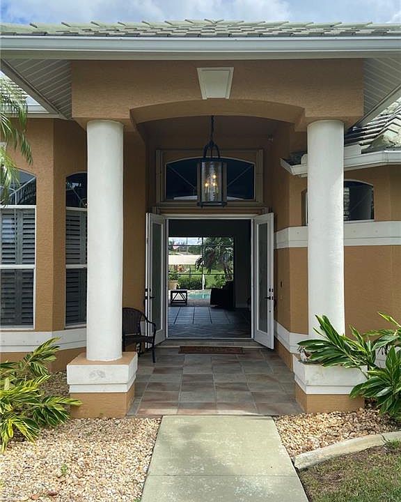 Beautiful Newly renovated DIRECT ACCESS POOL home in POPULAR GOLD COAST ESTATES. From the moment you walk through the DOUBLE DOOR ENTRY you will fall in love with this beautiful 3-bedroom 2 bath POOL home. Looking directly through the sliders you will see the LARGE POOL AREA with tropical plantings and the CANAL with new in 2020 decking on the DOCK and cover over the BOAT LIFT. 12' Ceilings, solid surface flooring, updated bathroom tile and vanities. The SCREENED LANAI is HUGH with approximately 1200 sq. The pool is heated and features a spa! Separate Living Room and Family room. GOURMET KITCHEN with CENTER ISLAND and all appliances new in 2020. LARGE SLIDERS and WINDOWS IN THE LIVING ROOM, FAMILY ROOM and MASTER BEDROOM. HURRICANE SHUTTERS installed on the windows and doors. ENJOY THE LARGE MASTER SUITE and LUXURIOUS BATHROOM with SEPARATE TUB AND SHOWER. MINUTES TO the River with NO BRIDGES or LOCKS - just two left turns. This gives you great Boat access to the GULF so you can fish, watch dolphins, or play on a sandy white beach island. CURB APPEAL, CIRCLE DRIVEWAY AND PROFESSIONAL LANDSCAPING including ROYAL PALMS surrounding the home.