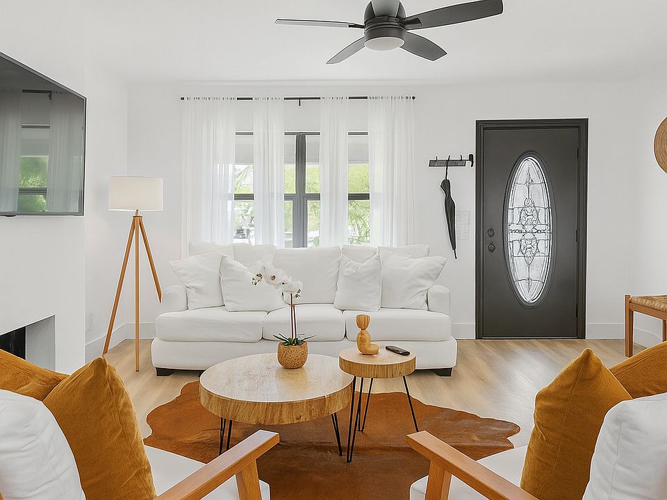 Step inside and enjoy a light-filled open layout with stylish finishes and modern comforts throughout. The home features a cozy living room, a fully equipped kitchen, and a versatile den ideal for an office, guest room, or creative studio.