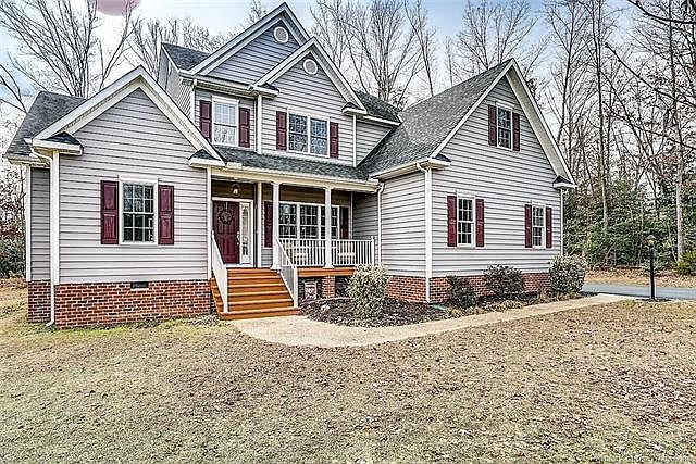 Enjoy your privacy in this one owner home located in a beautiful community in the heart of King William County. Hard to find first floor spacious owners suite with soaking tub, shower, double sinks and large walk in closet. 2nd opportunity for another 1st floor bedroom, workout room or office. Vaulted foyer and Great room with Gas fireplace and plenty of light. Open concept kitchen with dining area, stainless steel gas stove and appliances. Nice utility room with additional pantry storage. 2 large bedrooms upstairs share a hall bath with an additional bedroom or huge Bonus room. Side entry 2 car garage, paved parking, irrigation and whole house generator. Covered front porch and huge rear deck for entertaining. Located in the back of the community on a private cul de sac. Enjoy the clubhouse, workout room and community pool all summer. Freshly painted.