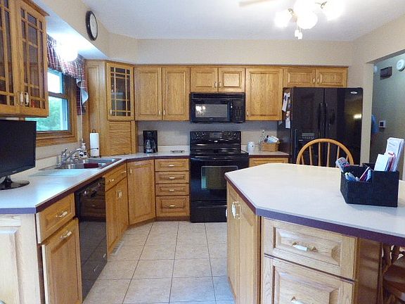 Close to elementary school!! Tastefully updated home, immaculate. Roof-5 years, all newer windows- 7 years, dishwasher is newer. Backyard is chain link fence all around, nice shed, beautifully landscaped yard. Storage all the way across the front of garage. Newer floor coverings thru-out. Ceramic in kitchen and baths. Kitchen and baths are updated. STEEL siding. Garage length could be extended anothe 4' by taking out storage closet doors.