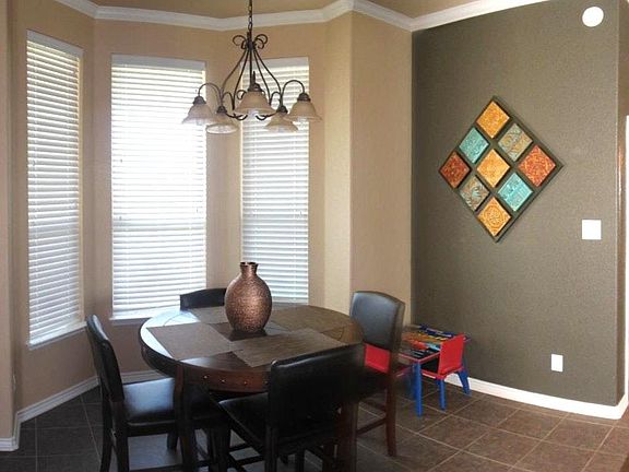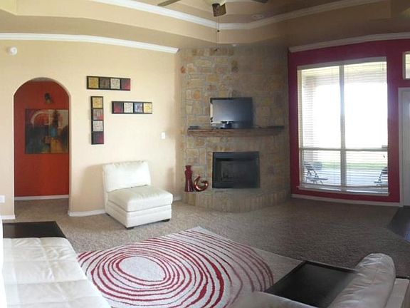 This stunning 4 bedroom, 2.5 bathroom home features 2096 square feet of room and a 2 car garage. This home is carpeted in living area, bedrooms, and dining room, and the remaining space is gorgeous ceramic tile. Living room features high ceilings, double tray ceiling with ceiling fan, corner brick fireplace with mantel, office or 4th bedroom with French glass doors off living room and an open kitchen. The features of this kitchen include: granite countertops, side-by-side refrigerator, glass top stove, built in microwave, corner sink with disposal, dishwasher, and an eat in dining area. The formal dining room can be found off of the kitchen. Master bedroom suite features luxurious bathroom with jetted tub, separate vanities, separate shower, and large walk-in closet. Two of the secondary bedrooms share a jack and jill bath. All bedrooms have ceiling fans. This home features a large fenced back yard and no rear neighbors! The back porch is covered and perfect for entertaining guests. This property is also pet friendly with deposit.