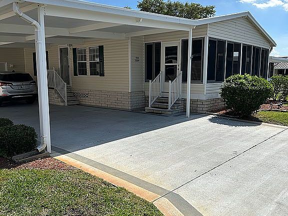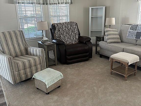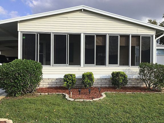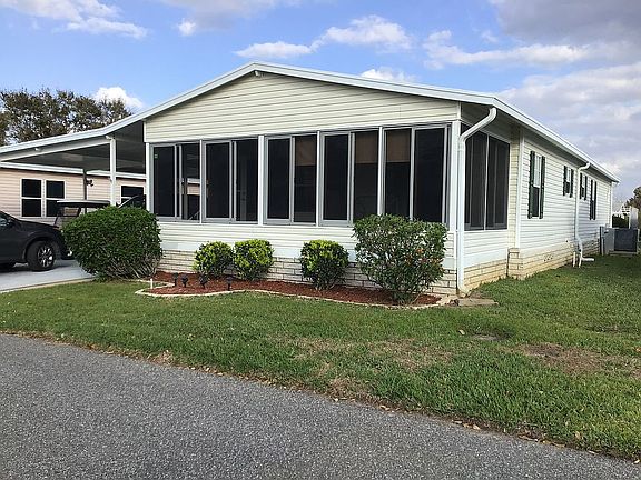 Homes in the Four Lakes Golf & Country Club, a 55+ golf community, are on lot leased land. Owning the home, but not the land, you pay a monthly lot rent of $578 which gives you and your guest access to the amenities of the community..................... This 2005 breathtaking 1456 sq. ft. home has so much to offer. Not only is it located in a desirable community, but it offers more than meets the eye: * Light and airy open floorplan with kitchen, dining room and living room... * Kitchen island with breakfast bar... * Kitchen storage: plenty of counterspace and cupboards... * Newer side-by-side refrigerator with water and ice... * Newer dishwasher and stove... * Built-in microwave... * Garbage disposal... * Brand new laminate flooring throughout kitchen, dining room and baths... * Living room with new carpet and furniture... * Office area with built-in desk... * Family room/den... * Separate laundry room that accesses the garage... * Guest bedroom with walk-in closet & brand new bed... * Guest bath with tub/shower combo... * Primary bedroom with new bed and walk-in closet... * Open access to an en suite with double sinks... * Step-in shower in primary bath... * Extra long linen closet in primary bath... * 22 x 18 garage... * 23 x 10 glass-windowed lanai.................... THIS HOME WON'T LAST LONG ON THE MARKET
