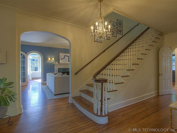 Timeless elegance in a stellar location just minutes from Utica square, Woodward Park, Cherry Street, Gathering place & Philbrook. Breathtaking views the minute you pull up to this classic midtown home, as you walk through the front door you are greeted w/a grand staircase and tall ceilings. Updated kitchen w/large island, fresh paint throughout, designer curtains and hardware, updated lighting, new carpet in basement living. Beautiful pool surrounded w/decorative fence, 2 car detached garage w/quarters