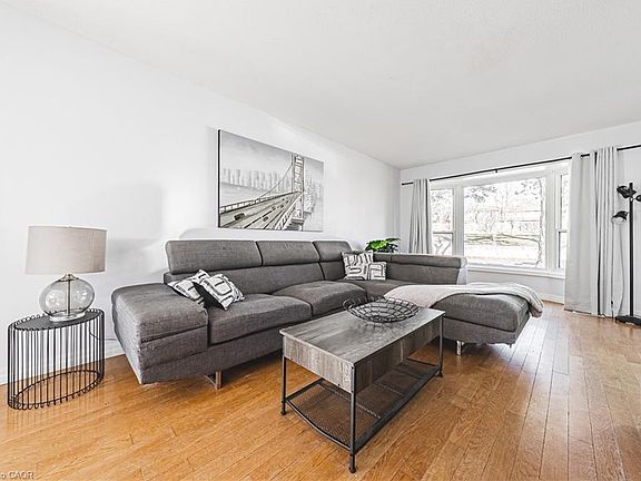 Exquisitely located on the outer edge of the complex, this spacious end-unit townhome offers exceptional privacy and convenience. Featuring 3 bedrooms and 3 bathrooms, this carpet-free home includes hardwood and vinyl flooring throughout. Enjoy the added convenience of a bathroom on every level and direct walkout access to your underground garage, complete with two (2) parking spaces. The main floor boasts a generous living room, dining room, and kitchen. With the kitchen and dining area thoughtfully positioned at the rear of the home, it’s ideal for entertaining or keeping an eye on little ones (and their furry friends) playing in the yard. The fully fenced backyard includes a gazebo, providing shade and shelter from the elements. Upstairs, the three bedrooms are all impressively spacious. The primary bedroom offers ensuite privilege and a walk-in closet. The lower-level family room provides yet another comfortable living space—perfect for a playroom, home office, or media area. Condo fees include access to a heated saltwater indoor pool, two exclusive parking spaces, water, Bell Fibe internet, building insurance, windows and doors, and exterior maintenance. Located within walking distance to numerous amenities, with easy access to major highways and public transit, Brant Hills is truly a wonderful place to call home.