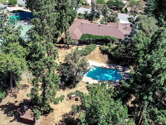 It's not just a home, it's an elegant lifestyle! Stunning 5 bedroom Vista Grande home on a 43,560 sq.ft. lot! Tucked nicely amongst lush trees offers immense privacy and luxury! Drive up and immediately fall in love! Formal entry opens to large living room with gorgeous wood beam cathedral ceilings, rich dark wood built-in bookshelves, and slider out to incredible backyard! Separate dining room is perfect for family gatherings! Big kitchen with plenty of counter and cabinet space, loads of natural light, plus view out to backyard paradise! Kitchen opens to breakfast area-great for more casual meals! Spacious family room with wall-to-wall windows, cozy fireplace, and wet bar! Opulent primary suite with slider to backyard! En-suite extra large primary bath with 2 separate vanities, 2 toilets, classic sunken tub, and 2 fabulous closets! Great sized additional bedrooms! Backyard is a dream! Big patio-perfect for entertaining. Relax and listed to the rushing stream! Fall in love with the beautiful green landscape and sparkling pool and spa! Kids and pets will love the room to play and explore! Details not to miss-inside laundry with utility sink, 2 car garage, side driveway with big shed and basketball court, water softener, RV/boat parking possible+! Make this YOUR home before someone else does! Welcome Home!