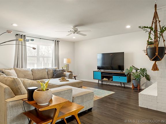 Charming one-story cottage on a corner, cul-de-sac lot perfectly blends modern updates with hyper convenience. Peacefully set in the quiet Red Fork area of West Tulsa with easy access to all major highways. Approximately 10 minutes to Downtown, Tulsa Hills, Cherry Street, Brookside and Utica Square shopping & entertainment districts. Recent updates to the home include double hung windows, exterior doors, roof, interior/exterior paint and flooring. Kitchen upgrades include honed granite countertops, stainless steel appliances, subway tile backsplash, hardware, sink & faucet. Bathroom updates include honed granite countertops, mirrors, lighting, tile, shower, toilets, cabinetry (primary bath), paint & hardware. Side load garage and large, private backyard with recently updated privacy fence.