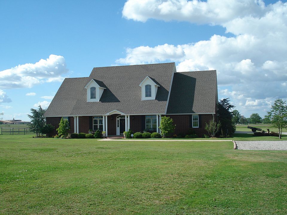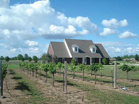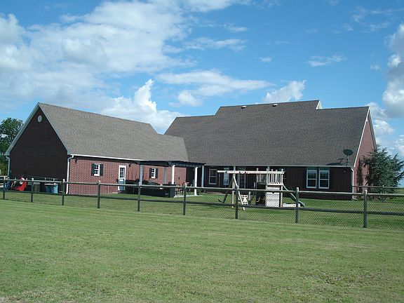 OWNER AGENT LISTING: Built 2005 - Custom built, one owner home 2.58 acres mol Approximately 2,506+/- sq. ft. mol (per appraiser) Built energy efficient 3 bedrooms 2.5 Bathrooms Open living area ~ stone/brick fireplace with vent less gas logs Office with abundance of cabinets/bookshelves Split bedroom set up Cherry wood throughout 3 car attached garage (one with workshop area) Large covered front and back porches Amenities: *Stainless steel appliances ~ double electric ovens, gas counter top stove, built-in microwave, dishwasher and refrigerator *Granite countertops *Eating bar for four stools with sink/disposal ~ automatic hot water (hot water tank below sink) *Island with sink and disposal and eating area *Walk-in pantry *Built-in China cabinet *Large master bedroom with two walk-in closets (one is storm room) *Master bath with Jacuzzi tub and large walk-in closet and two separate sinks *Jack-n-Jill bathroom for other two bedrooms with tub/shower *Large utility room with lots of cabinets ~ mechanical room large enough for refrigerator/freezer *Lots of built-in cabinet and drawers for storage throughout house *4 zone heat and air ~ Energy efficient Trane unit *Central Vacuum system *10 ½ inches blown-in insulation in attic and cellulous insulation blown on exterior walls *Double pane windows cherry wood/vinyl pull out windows with storm windows added *Aerobic sewer system - City electric, city water, and Center Point natural gas *Water well *ASI Security System *Inside (living area) and outside sound system (back yard) *Fenced back yard *Landscaped *Outdoor kitchen *Pergola *Large floored attic (over all three garage area) with stairs *Kids play set *Small vineyard ~ wine grapes Taxes: $2,018.47 with homestead exemption Call and ask for Carla Sandy @ Hometown, REALTORS (580) 363-2345 or cell: (580) 670-0440. Shown by appointment to qualified buyers only.
