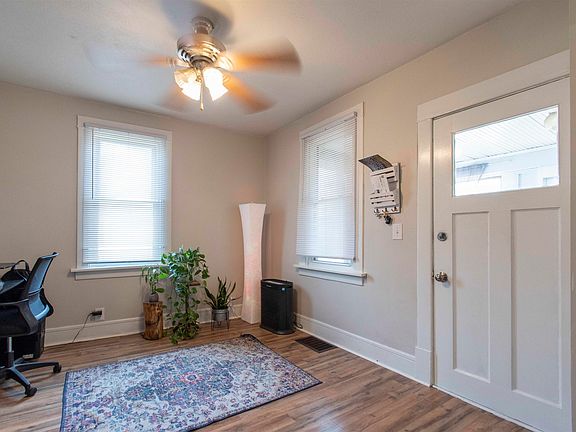 Two story home with a lovely 3 season entry porch. Updated kitchen with built in dishwasher and walk in pantry. All appliances stay. Bathroom recently updated with a new tub and vanity. Situated on an extra wide lot with a fenced yard and beautiful pine trees. Great price for the area. Garage is used for storage and does not have a functioning door. Roof replaced in 2016, water heater replaced in 2018 and new electric panel in 2020.