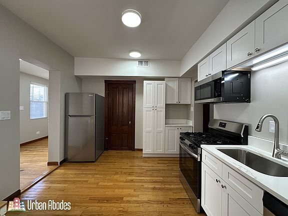 Exceptional Bucktown two bedroom, one bath rehab features central air, hardwood floors throughout, brand new kitchen with granite countertops, stainless steel appliances, microwave, dishwasher, gas oven/range, fridge, large living and dining rooms, spacious bedrooms, good closet and storage space, large oversized shower,well behaved pets considered, easy street parking, close to the 606, and two blocks to Bucktown nightlife and Blue Line!