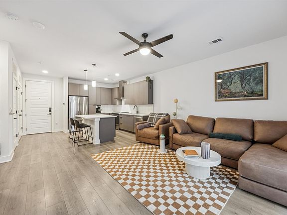 Located within Axiom East, one of East Austin’s most design-forward condo communities, Residence 211 offers a refined one-bedroom living experience in the center of one of Austin’s most vibrant neighborhoods. The interior is thoughtfully designed with a spacious open floor plan, warm hardwood flooring, and clean modern finishes throughout. The kitchen serves as the centerpiece of the home, featuring sleek cabinetry, stone countertops, and a generous eat-in island that opens seamlessly to the living area—ideal for both everyday living and entertaining. The bedroom offers privacy and comfort, complete with a walk-in closet and a well-appointed bathroom with a frameless glass shower and contemporary detailing. A dedicated laundry closet with in-unit washer and dryer enhances convenience. Positioned on the courtyard level, the private patio provides direct access to the community’s outdoor lounge and grilling area, creating an effortless extension of the living space. Residents of Axiom East also enjoy access to the rooftop terrace, offering elevated gathering spaces with skyline views, as well as secured access and reserved parking. This location represents one of East Austin’s most walkable and desirable pockets, placing residents just steps from acclaimed restaurants, coffee shops, and nightlife including Suerte, Canje, Lazarus Brewing, Whisler’s, Kitty Cohen’s, and Fleet Coffee. With immediate proximity to downtown Austin, Lady Bird Lake, and major tech campuses, this residence is ideally suited for buyers seeking a lock-and-leave lifestyle, investment opportunity, or full-time urban home in one of Austin’s most dynamic and appreciating neighborhoods.