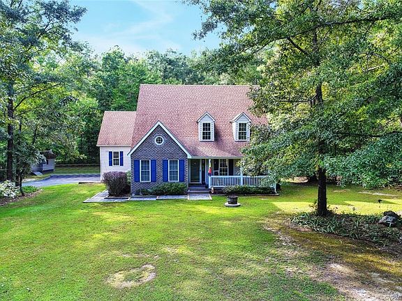 Private Cape Cod on a 5.25-acre park like setting. 3 bedrooms, 2.5 bath 2426 sq. ft. with additional office/study/playroom situated on 2nd floor with its own rear staircase. Located in the sought-after Genito West neighborhood in Eastern Powhatan. You will be awed by the Great Room which boasts vaulted ceilings and views to the 2nd floor loft, gas burning fireplace, and tons of natural light. The eat-in kitchen features a large Bay window, tin back splash, lots of cabinets, & views of the back deck and pool. The dining room is open to the kitchen with French doors that lead to the over-sized deck, perfect for entertaining. Spacious 1st floor master wows w/ vaulted ceilings, walk in closet, and en-suite bathroom that has soaking, jetted tub and stand up shower. Mud room/laundry room attached 2 car garage, separate detached workshop and additional storage shed. Above ground pool 18'x 33' connected to expansive back deck. Front yard features lovely garden pond and relaxing porch. Additional features of this home include newer second-floor heating & air conditioning unit, water softener, large walk up attic, & award-winning Powhatan school system. Close to 288 and the Powhite Parkway.