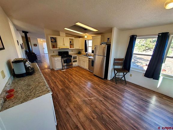 Creek and BLM adjacent land. USFS Border! Corner lot! 2.3 acres Views / 2+ acres / Home on a creek, with direct BLM access - Amazing parcel. Paved access via Government Springs Rd, only 12 min to Montrose. **Borders BLM / USFS /Dept of Wildlife to the East for 1,000+ acres of access** 1,700+ feet of home! Newer remodel. 3 decks, great views. 2+ acres, with creek and views. Metal skirting, new paint in and out, roof shingles less than 4 years old, new carpet and LVP in bathrooms. Horsefly Creek runs thru the parcel. (seasonal) 4 bedrooms. Note: 4th bedroom doesn't have a closet, but one could easily be added as its a large room. Could be used as 2nd living area, office etc depending on buyers needs. This home should not have an issue with govt backed loans like FHA/RD/USDA, as it has been purged, never moved and on a permanent foundation. No HOA, easy to add a 2nd home or barn or bardominium, or ADU. plenty of usable flat land for a garage also. Montrose County Building codes. Near Telluride 60 min away and Hot Springs in Ridgway 24 min away) Per county of Montrose regs, a detached ADU is 100% allowed. see assoc docs for other use by rights as well as barns and garages and accessory farm uses.