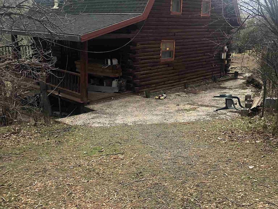 Log cabin 3.3 acres. Pole barn ,great views. Well plus district water.Cabin needs work. Contractor bid for repairs available. Room for gardening or four H projects.Storage under the house.