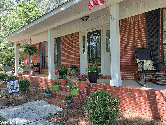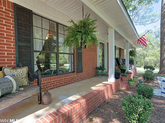 WELCOME to THIS PEACEFUL COUNTRY setting and charming home! Mature Oaks and picturesque views from the front or back! This home offers MANY of your favorite features, from In-Ground Swimming Pool to a Sunroom/Bonus Room, Covered Front Porch and large sunlit Dining Room ! In the Den, you will find a welcoming Wood-burning Fireplace with white Brick Hearth, as well as Vaulted Ceiling for a refreshing open feel. Floors are Tile and Pergo throughout for easy cleaning. The Kitchen includes Stainless Steel appliances, and a Breakfast Bar overlooking spacious Breakfast Area w/ plenty of windows for natural lighting! The Den opens up to the Dining Room so there is plenty of room for Entertaining! Master Bed/Bath Combo features Garden Tub and Separate Shower, His & Her Vanity Sinks, and Double Walk-In Closets! Tile and Pergo Flooring throughout, Thermal Doors/Windows, and painted cabinets. And you will love the spacious lot the home sits on, too! Enjoy approx 2.4 Acres with Mature Trees, climbing Ivy, a Storage Building, Chicken Coop, and fencing perfect for dogs to roam! So bring your chickens...and horses...or cows...or pigs! THIS IS COUNTRY LIVING AT IT'S BEST AND A MUST SEE! Located Just off Highway 90, this property is just minutes from the Interstate as well as a new local favorite hub: Buc-ee's Mega travel stop! Also, just miles from the expressway and easy drive to our beautiful Alabama Beaches!!! Don't miss out on all this unique property has to offer! CALL ME TODAY TO SCHEDULE A SHOWING!