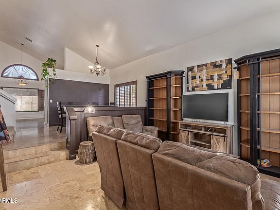 This stunning home features elegant stone tile flooring downstairs and an exquisite modern kitchen remodel. The kitchen boasts granite countertops, stainless steel hardware and appliances, and a sleek glass backsplash. Step outside to your oversized premium backyard—an entertainer's dream! This beautifully finished outdoor space includes an RV gate with a large storage area, perfect for a boat or additional vehicles. Enjoy the refreshing diving pool with a safety gate, all while benefiting from leased solar for energy efficiency.