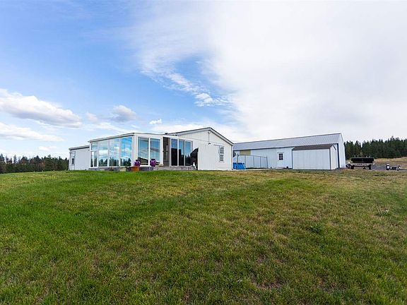 Great 3Br, 2.5Ba home on 5 acres. A large master with full bath and big walk in closet, the other 2 Br's are nice size. House is pit set, has an enclosed front porch with large windows and sliding doors, the flr plan is open & easy to maintain. Huge well maintained driveway/parking/turn around area, a 30x40 heated & insulated shop with 12' doors, a 24x60 garage/shop that has new sidewalk leading to the house. Sod in the front yard, back yard area is fenced, and plenty more land for you to use as you please.