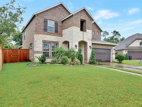 Beautiful energy efficient Meritage home located on an oversized corner lot in Sawmill Ranch. Fantastic curb appeal with impeccable details throughout, includes engineered hardwood floors, upgraded granite, and corner fireplace. Elegant formal dining room, large utility room. The living and kitchen area are bright with an abundance of natural lighting. This home features an open floor plan with kitchen breakfast bar, stainless steel appliances, gas cooktop and bright spacious family room. The kitchen is any cooks dream. Master bedroom has a sitting area, and en-suite bath with garden tub, walk-in shower, dual sinks and vanity space. Large game-room and 3 additional spacious bedrooms upstairs. Spectacular backyard with extended covered patio. This community has something to offer everyone, community- pool, splash pad, playground, walking trails, and pool house Zoned to Klein schools.