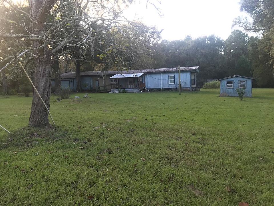Country living on unrestricted 1.66 acres in a wooded community located right off Highway 149 that is perfect for small business, mobile homes or building a home. Several mature trees have been planted just a few years ago in the front by the road. Two-bedroom/two full-bath mobile home needs TLC, Home has newer kitchen remodel and there are rolls of new carpet in the living room ready for install. Metal roof. Sturdy covered rear deck and front porch. The front porch has a handicap-accessible ramp. Storage building and a one-car garage.