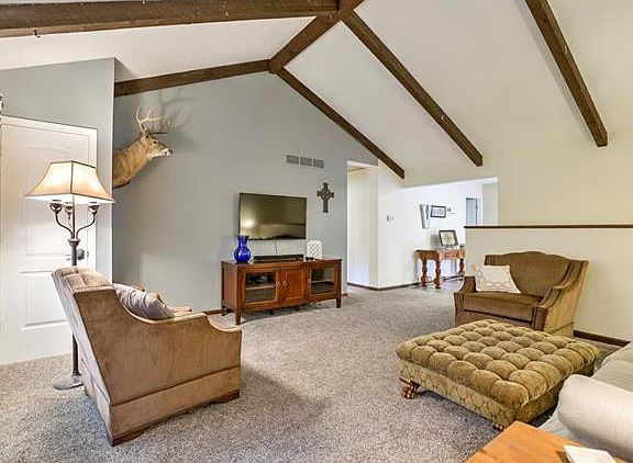 Updated 3 bedroom, 3 full bath sitting on 5.5 wooded acres with second kitchen downstairs could possible be second living area with 4th non conforming bedroom w full bath. Outdoor entertainment area w huge patio and new deck. Updated Kitchen with new floors, upscale carpeting in vaulted ceiling living room. Too much NEW to mention (doors, flooring, pull out drawers in kitchen, countertop, and MORE) Master is separated on one side of home. Porch on front and pool in back! All sitting on paved road! OWNER/AGENT