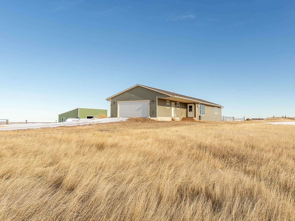 Listed by TJ Wojtanowicz at Black Hills SD Realty 605-863-1920. Looking for a home on land? This home built in 2014 features 1632 square feet on on level with 3 bedrooms, 2 bathrooms, and attached 2 car garage. Features include access to the mudroom from the garage, sink and cabinets in the laundry room, large kitchen with ample cabinets, walk in pantry, dining area with access to the back deck, large living room, a workstation, storage, all bedrooms have walk in closets, and a master bath. Outside you have 9 Acres fenced with a shop building. Call to view today.