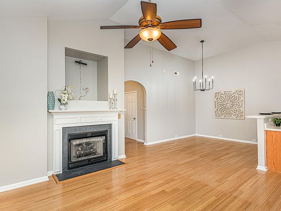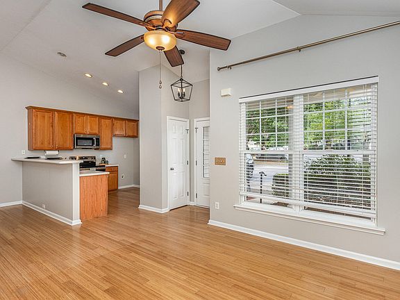 Welcome to your dream townhome in the highly desired Bedford community! This end unit ranch boasts fresh paint throughout, vaulted ceilings, and plenty of natural light. The charming rocking chair front porch leads you into a spacious living room with a gas log fireplace, seamlessly open to the kitchen and dining area. The kitchen features 42-inch cabinets for ample storage and brand new stainless steel appliances. Down the hall, you'll find two spacious bedrooms; one with an updated en-suite bathroom and the other with access to the fenced courtyard, which includes storage and plenty of room for a garden. The Bedford community offers amazing amenities such as a pool, tennis courts, clubhouse, playgrounds, and more. Don't miss out on this perfect blend of comfort and convenience!