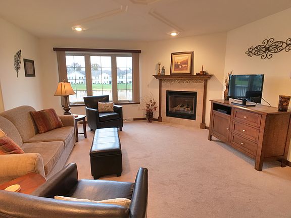 Highly Desired Newer Condo! Offering easy living in a superbly maintained end-unit condo in the Golden Pond Condominiums development. This 4-year-old home features 3 bedrooms and 3 full baths. The main floor master bedroom has a private bath with a double sink vanity, step-in shower and walk-in closet. There is also another bedroom on the main floor plus the laundry room making life simple. The open concept has very spacious rooms with lots of closets space.The kitchen has tons of counter space and lots of cabinets plus an extra pantry and all the newer appliances are included. One will appreciate all the natural light in this home with all the windows in the dining room and living room which overlooks the pond with bubbling water fountains. The lower level has a large family room with another gas fireplace, bedroom and full bath plus a large storage room. Enjoy the views from the maintenance-free deck or on the private patio out the front. There is an attached 2-car garage plus extra outdoor parking for this end-unit condo. Seller's updates/upgrades include: newer carpeting in the lower level & upper 2nd bedroom, quality shower doors, all window blinds, electrical outlets added to storage room, new kitchen faucet, and added screen door. Newer washer and dryer are included. Lower tax area, and there will be a reduction in the 2017 tax bill for this unit. Condo fees are $130/mo, but increasing to $150/mo in 2018. Move-in condition and well worth a look!