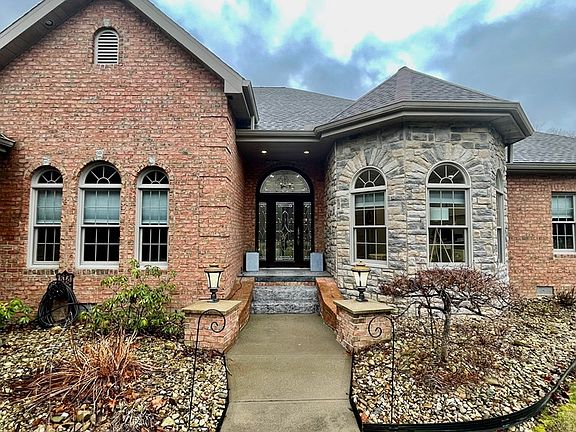Once in a lifetime opportunity, NEVER before on the market. This one owner custom built home sets on 7 stunning acres with the amenities of a small resort in your own back yard. Over 3600 square ft on ONE level. Enter the vaulted ceiling foyer with marble tile flooring leading to cherry hws as you flow into the spacious great room with trace ceilings, large built ins, gas fire place all open to the one of a kind chefs kitchen, customized with 2 islands, a built in coffee bar, double oven, vegetable sink, ceramic tile adorns the custom cabinetry on 3 wall open to the eat in dinning rm. Primary suit features trace ceilings and lighting 2 lg walk in closets opening to the ceramic tile double vanity bath, with jetted tub, walk in shower. 2 more spacious bedrooms & ba both with walk in closets. with a Fm rm you dream of, wet bar with full heated sauna shower. out the back door is a full outdoor kit, 900 sq ft pool house, hot tub, firepit & fountain. 3 car att gar. 1200 sq ft building