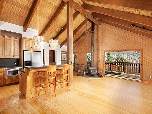 This special property is just 25 minutes from Aspen. The charming home is nestled in the hills on 36 acres allowing for totally private and cozy nights by the woodstove. The landscaping includes a firepit, horseshoes, perennial gardens, a chicken coop and vegetable gardens. The house is a hidden gem and has special details like beautiful custom cabinetry in the kitchen and bar area and a custom ceramic sink in the master bath. A large detached heated garage with attached shop is perfect for all your toys.