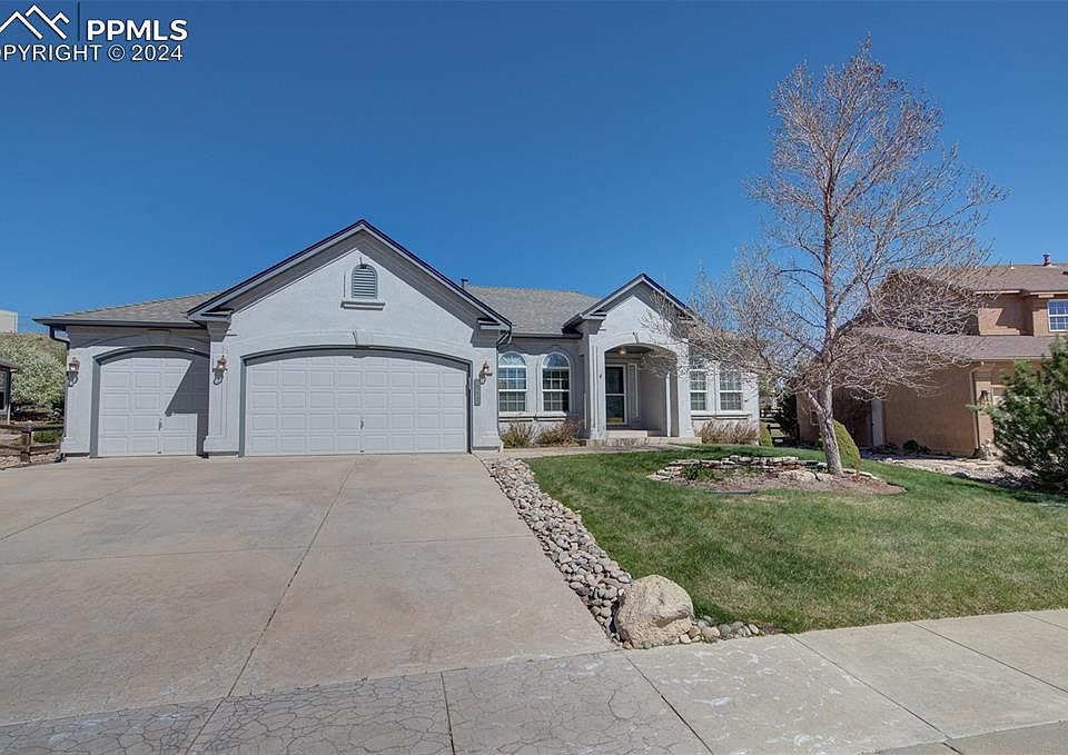 Beautiful ranch style home located in cul-de-sac available to move in NOW! The main level features: Spacious kitchen with granite countertops, stainless steel appliances to incl. fridge, double oven, pantry, butler’s pantry, breakfast bar, eating nook with bay window and walk-out to the oversized patio - living room with wood burning fireplace - dining room with crown molding - office with French doors - primary bedroom with 5-piece bathroom and walk-in closet - powder room - laundry with washer, dryer and mud sink. The fully finished basement features: Large family room - 2nd bedroom - 3rd bedroom - 4th bedroom with walk-in closet - hallway bathroom - linen closet - utility room with lots of storage. More features are: LVP on the entire main level - 2 year old interior paint throughout - A/C - oversized patio with pergola - huge backyard - stucco exterior - oversized 3 car garage with spare fridge - located in cul-de-sac - near schools, parks, shopping and entertainment - near Power Blvd, I-25 & easy access to military bases.