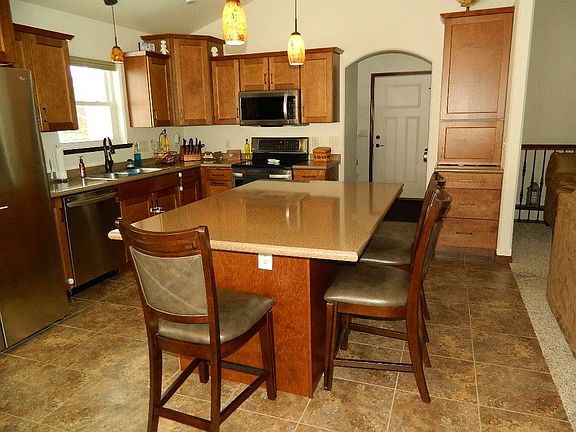 Just like new and ready to move in. 4 bedroom, 3 bath home features split bedroom design, all Maple 3 panel doors, walk in closets in all bedrooms, Tile floors in the baths, kitchen and dining area, main floor laundry, vaulted ceilings, custom tile shower in the master bath with his and her sinks, maple cabinetry accented with crown molding and granite look counter tops. Huge lower level family room with large daylight windows. In addition to the family room is a large 4th bedroom.Lower level also includes a full bath and a bonus room or play room. Yard was custom landscaped Huge Large deck, concrete drive way, floor drain in the garage. Owners are being transferred and hate to leave such a beautiful home.
