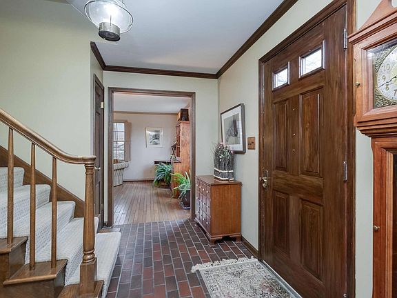 Escape to the tranquil setting of this Cape Cod home nestled on a wooded lot with the added bonus of an additional side lot included, offering ample space and privacy in a convenient location close to schools, shopping, parks, recreation paths & all the QCA has to offer! The main floor features a welcoming entry with brick floors that flow to beautiful hardwood floors throughout the rest of the main floor. Relax in the inviting living room with fireplace with oversized windows and slider lead to the screened porch off the back & invite the outdoors and natural light in. The kitchen is the center of the home surrounded by the dining room, cozy den with a wall of great built-ins could be used as a main floor bedroom with a 3/4 bath in hall, family room with brick wood burning fireplace and access to the back deck. Upstairs is the master suite with big bathroom, 2 additional good size bedrooms (one is configured to be 2 bedrooms with minimal effort) and a full bath, plus additional closet and storage space. Outside, a detached two-car garage offers not only convenient parking but also a floored second-floor space, ready for future finishing and multiple uses with access from the main floor family room planned for future use when the home was built. Whether you envision a home office, studio, or recreational room, the possibilities are endless. Schedule your showing to see this home TODAY!