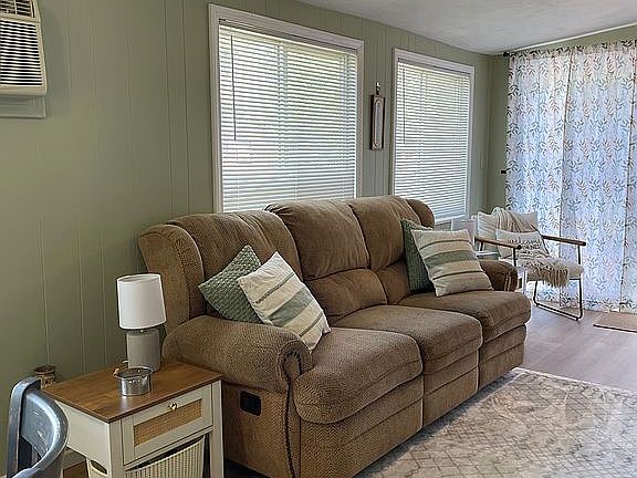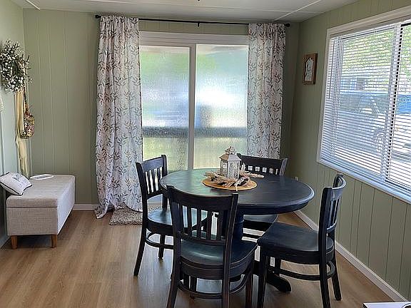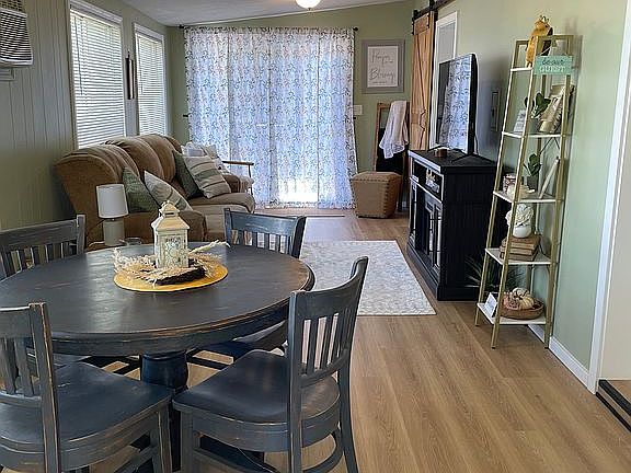 LAKE ACCESS. Water is on from April 15th to Oct 15th. Completely remodeled. MOVE-IN READY. fully furnished, one-bedroom, one bath camper with attached stick-built addition. New kitchen, brand new fridge, new tankless hot water heater, new DC converter, new flooring, Living room, dining area, front and back decks, concrete patio fire pit area, plenty of parking, shed with electricity, and wooded common ground area behind the property. This lot is owned (not leased) with very low property taxes (approx $300 per year) and an annual HOA currently $675. The electric is metered for this lot, and water and sewer, trash (dumpster area) are all included. Sandy Shores is a co-owner association. It offers year-round camping, two (2) private lakes, and no gas engines. Grass Lake has a large beach area, a boat launch, and two fishing docks. Loon Landing has a large fishing dock. Year-round maintenance Staff, two (2) bathhouses with showers. One that is heated and open year-round, a large Pavilion with a full kitchen and covered porch is available for co-owners. Putt Putt Golf, Basketball/Pickleball Court, Baseball Diamond, Soccer Field, Disc Golf, Hiking trails, Horseshoe pits, Cornhole and many planned activities throughout the summer. Short term rentals are allowed. Would make a great Airbnb!