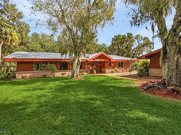 Old Florida River Front Living in Alva. Under the shade of mature oak trees draped in Spanish moss, catch the twinkle of sunlight bouncing off the majestic Caloosahatchee River as you enjoy Southern, Riverfront Living. Set your stress aside as you sit on the dock or expansive lanai for a cool glass of refreshment as you listen to the sounds of nature while enjoying river views. Stretch out in its ample 3772 square footage within its 3 bedrooms, 2 baths great room main home plus its oversized detached garage with 1 bedroom, 1 bath efficiency. Enjoy breathtaking river views at every turn highlighted by pouring natural light from overhead skylights, and oversized rooms for comfortable living. Tons of storage space with ample closets everywhere and did I mention the newer metal roof and twin air conditioners? Pull up a chair and get cozy by the fireplace or pull down your boat off the 10,000 lb lift. Don't wait to start living the Florida life! Call and make your appointment to see this home today!