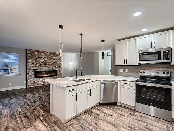 Save up to 250.00 per month off your payment with the low property tax rate compared to other Brighton homes. Have a home to sell ? We take trades....Welcome to your dream home in the highly sought-after Bromley Creek subdivision! This beautiful home has been updated from top to bottom. Features include 4 spacious bedrooms and 4 modern bathrooms, Loft, Office, Hearth room, Dinette, Dining room, Great room, Finished Basement and 3 car garage all designed for today’s lifestyle and ready for you to move in and enjoy. As you approach the home, you’ll notice the fresh exterior paint which includes a new fully permitted roof for your peace of mind. Step inside to a welcoming two story, soaring ceiling, new powdered coated iron, solid surface flooring that leads through the entire main level, ensuring easy upkeep. The heart of the home, a generously-sized kitchen, boasts stunning new high end cabinets quartz countertops, a stylish tile backsplash, all new stainless steel appliances, sleek cabinetry is enhanced with chic black / gold hardware, while new LED ceiling lights fill the space with warmth and brightness. A cozy heath-room is located adjacent the kitchen with a 60" fireplace equipped with electric heat and stone surround from floor to ceiling. Venture upstairs to discover generously sized bedrooms and two beautifully updated full bathrooms. Each bathroom has been refreshed with new paint, modern flooring, quartz countertops, elegant faucets, and toilets. Additional features include: All popcorn ceilings have been removed, Every door and cabinet is adorned with designer black lever handles, adding a touch of sophistication. All bedrooms have new paint, carpet and stylish lighting. But it’s not just the interior that shines—this home is perfectly situated within walking distance to schools, parks, trails, and open spaces, making it an ideal location for families and outdoor enthusiasts. Convenient shopping at Prairie Center and recreational fun at Barr