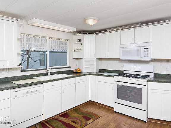 This delightfully updated mobile home features a large kitchen with ample cabinet & counter space, all new appliances, gas range, laminate flooring, new windows & new furnace, a large, covered deck, greenhouse and shed (with outlet) plus several garden beds with beautiful perennials.
