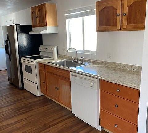 Cute 3 bed, 2 bath manufactured home on north end of town. Fully remodeled inside, with modern flooring, counter tops, and paint, has back porch, and front patio. Comes with all appliances. Fully fenced property. Horses ok but owners want $100 more per month for livestock. Call to view today.