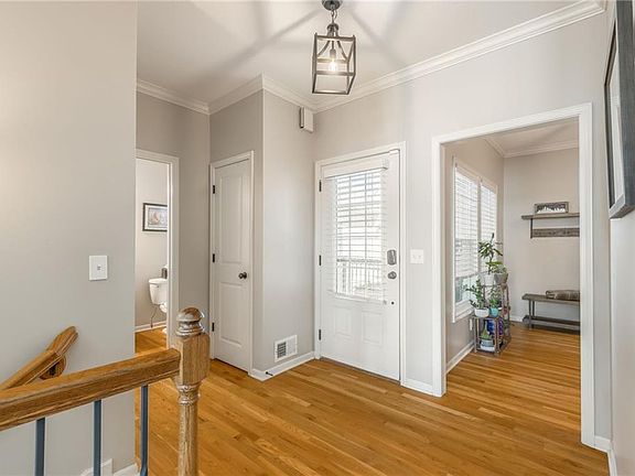 Come tour this picture-perfect 1.5 story maintenance provided (landscaping, mowing, irrigation and exterior of home) townhome in the well-established Staley Farms Community in KCMO. This sought-after location is situated close to school, shopping and boasts 4 bedrooms, 3 full and 2 half baths. The spacious entry opens to a gourmet eat-in kitchen with granite counters, custom cabinets, and rich wood flooring. Convenient laundry room just off the kitchen complete with shelving and storage possibilities. Floor-to-ceiling windows in the adjacent living room offer so much natural light. Gather round the cozy fireplace or step out on the deck to enjoy your view of the golf course. The spacious primary suite includes a spa bath with jetted tub, tile flooring, dual vanity and walk-in closet. The second floor offers a bonus landing with room for a small den, shelving, sitting area - the possibilities are endless. Two spacious bedrooms, each with an adjoining baths, complete the second-level living space.  Don't forget the lower-level walk-out basement. This space is huge! Another bedroom or office and half bath, large kitchenette with bar and lots of shelving. Outdoor access with a covered patio and more views of the golf course. With beautiful landscaping, this lovely home is tucked away on a quiet street with easy access to walking trails and all the neighborhood amenities.